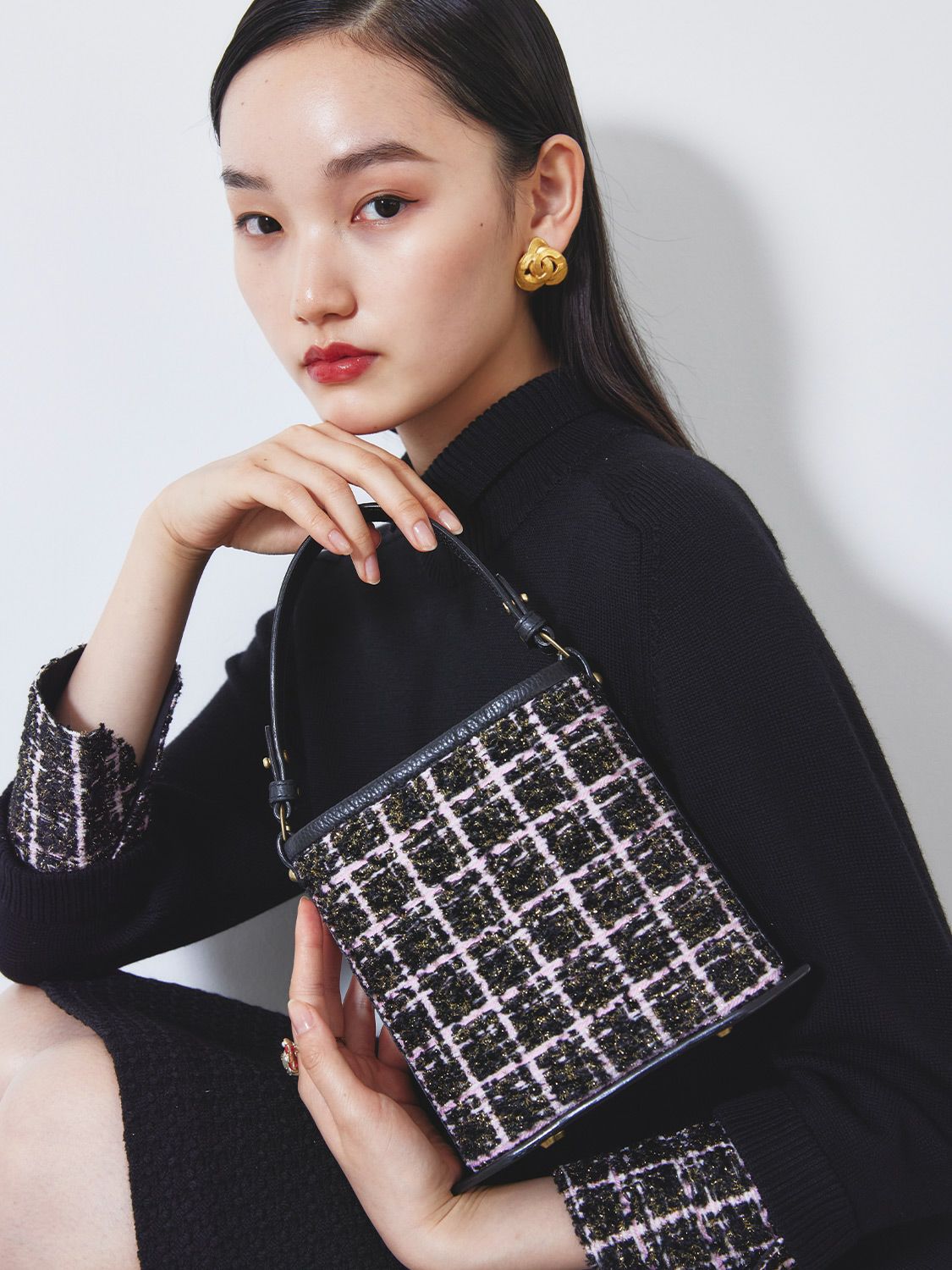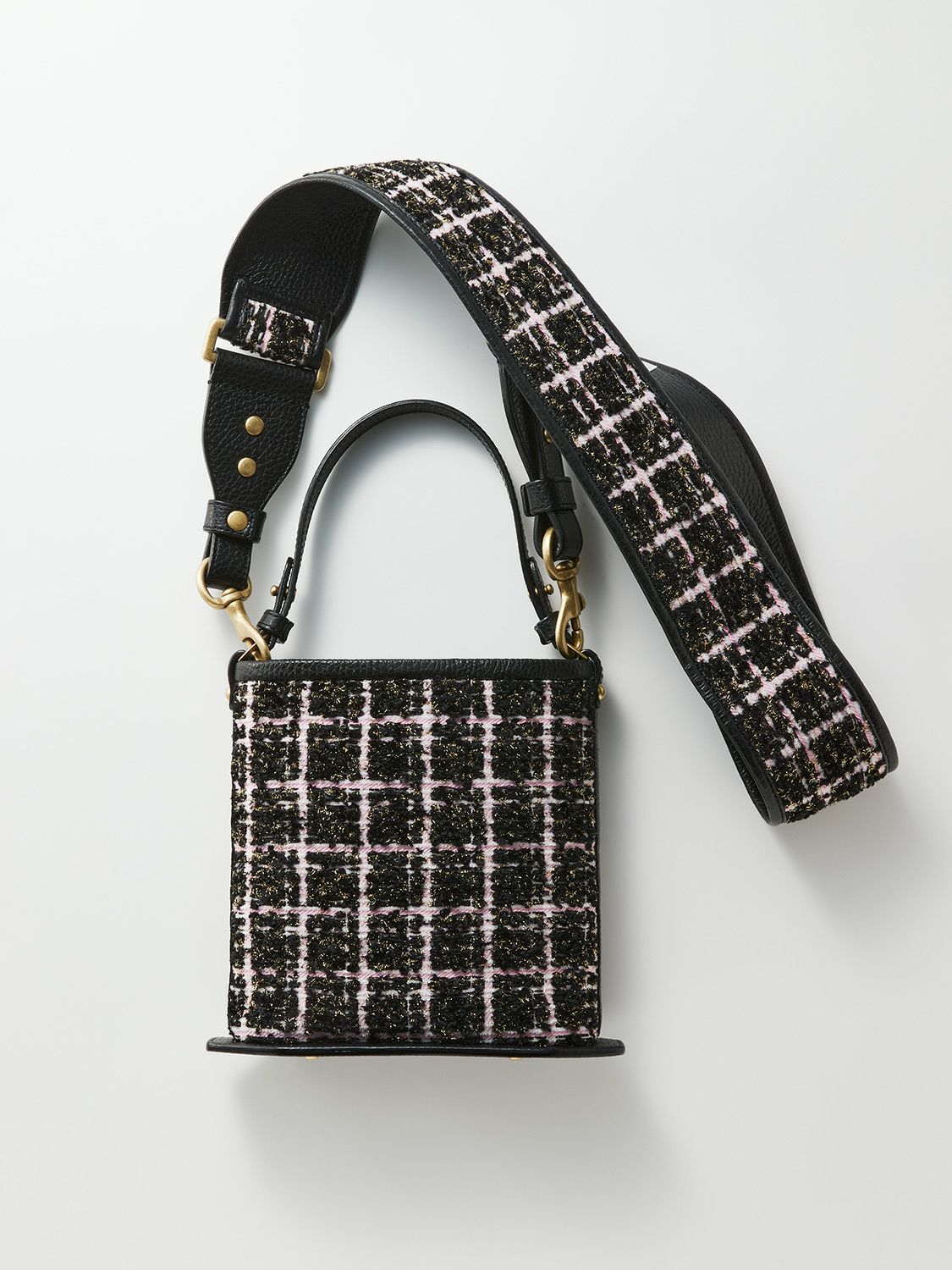 古都・京都にて約 1200 年前より育まれてきた「西陣織」。 世界に誇る高い技術の西陣でセリザワオリジナルデザインでお生地をお作り致しました。 インポートツイードを忠実に再現したお柄と トレンド柄レオパードを西陣織でご用意致しました。 西陣織とレザーを組み合わせたファッション性の高いハンドバック。 携帯・お財布を入れて持ち歩いて頂くのに最適なサイズで御座います。 自立型のきちんと立つデザインなので、 日常からパーティーシーンまで幅広くお使い頂けます。 また別売りの西陣ストラップを付けてショルダーにしてお召し頂けます。 日本ならでの繊細な美意識や美しい感性で表現される世界観を日常に感じて頂けるお品で御座います。