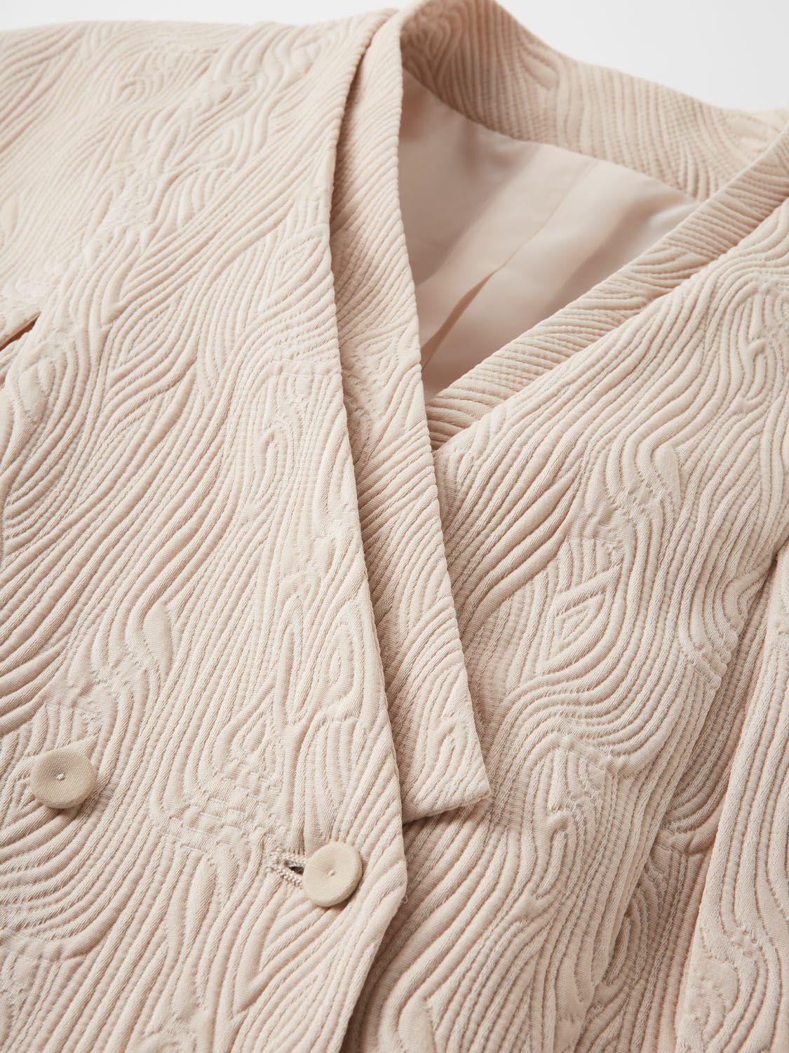 ジャガード生地に全体に雲のような流れる柄が施され濃淡が美しいARTのようなお生地で御座います。「雲」は大和絵や屏風絵にも絵描かれており、時の美しい流れや縁起の良いものの象徴とされておりました。お生地は、張り感があり、形状を立体的に記憶するもので御座います。シワになりにくいお素材ですので、安心してお召し頂けます。