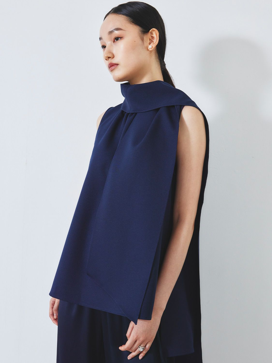 大きなボウタイが印象的なトップス。 身体のラインを拾わずヒップが隠れる丈ですので安心してコーディネートを楽しんで頂けます。 ボウタイ部分は1ヶ所で縫い付けているため取り外しは出来ません。リボン結びや1回結び、スカーフのように流したりと、様々なアレンジ方法でお楽しみいただけます。 お生地はきちんと張り感のある微光沢でお作りしておりますので、エレガントで高級感のあるブラウスとしてお召し頂けます。 別売りのボレロジャケットと袴パンツ合わせてお召し頂きましたらスーツとしてもご活用頂けます。
