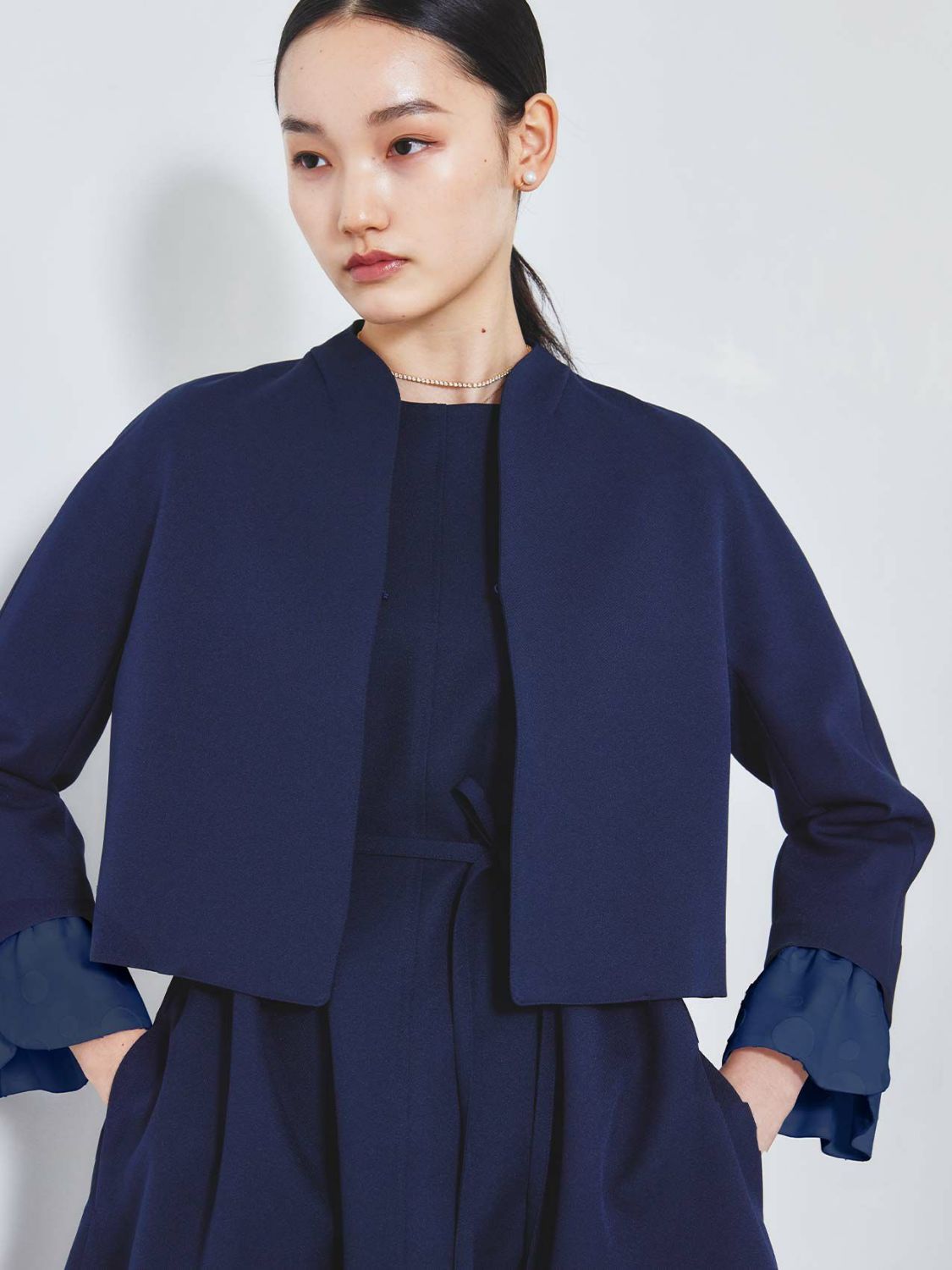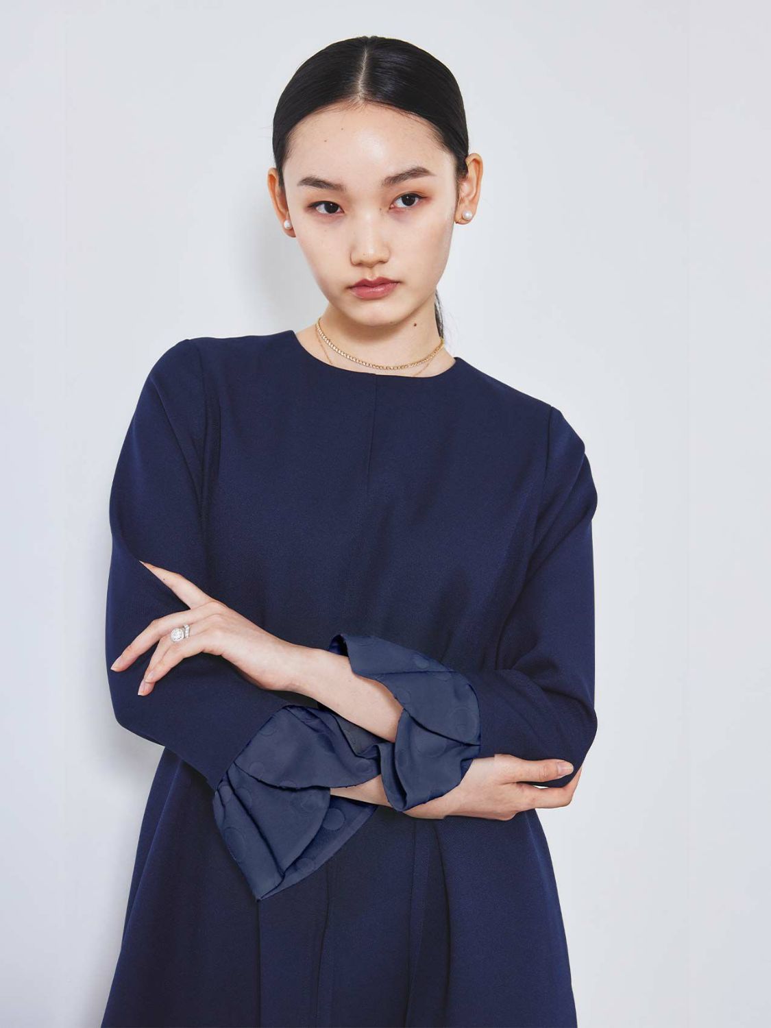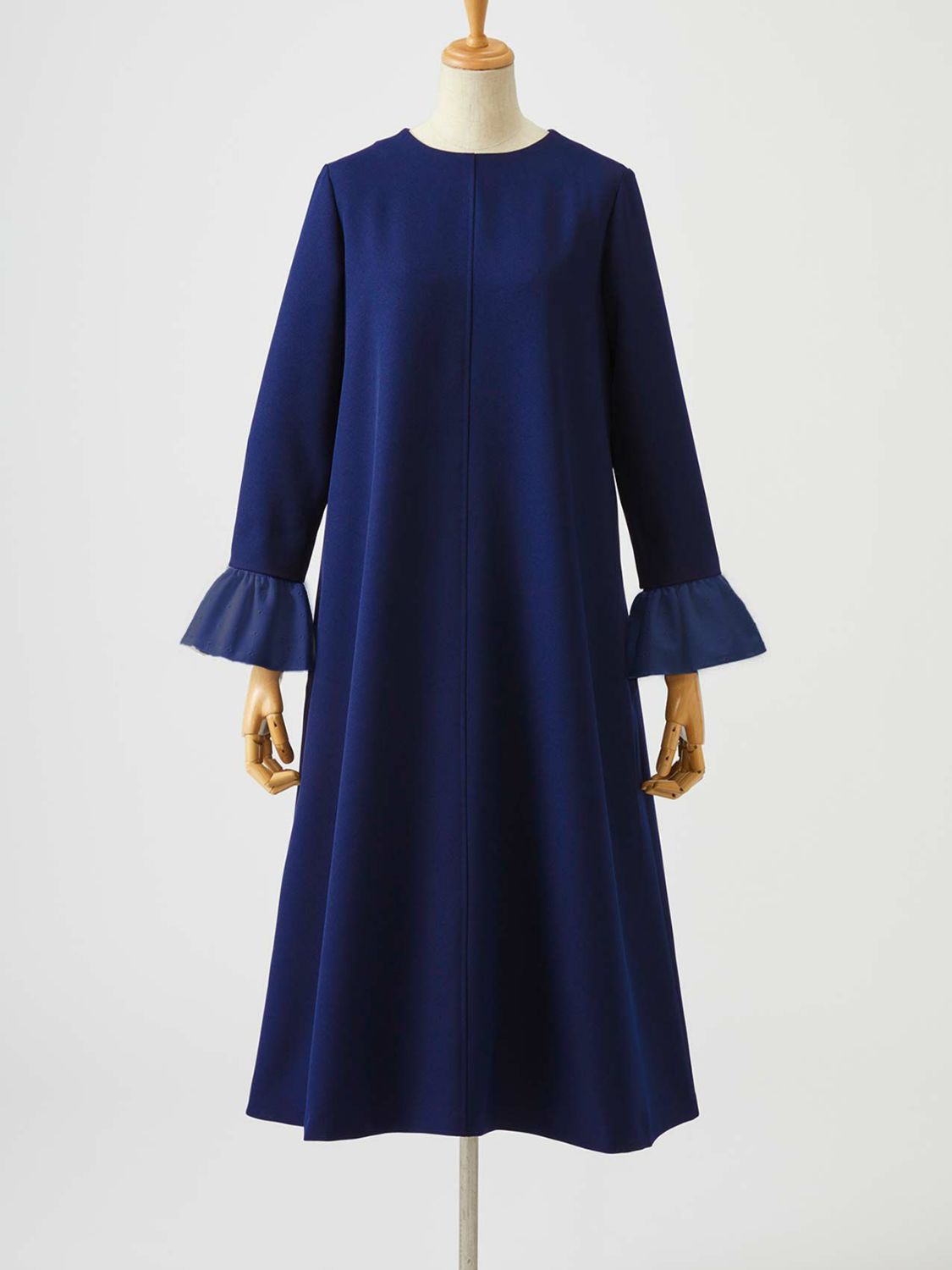 Navy×Navy Valentino Embroidery Cuffs Dress